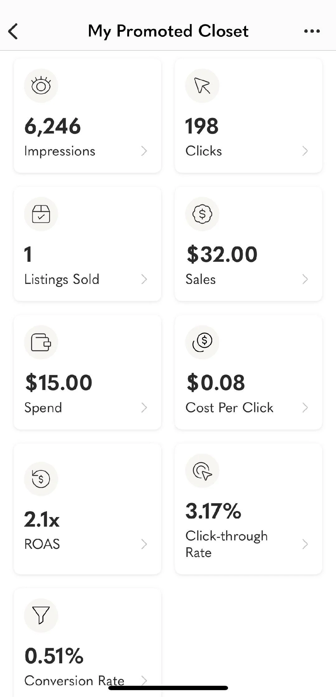 I was able to participate in a free trial of Promoted Closet around when it was released in July 2024. The budget for my week trial was $15. Before jumping into the results, I’ll give some context: